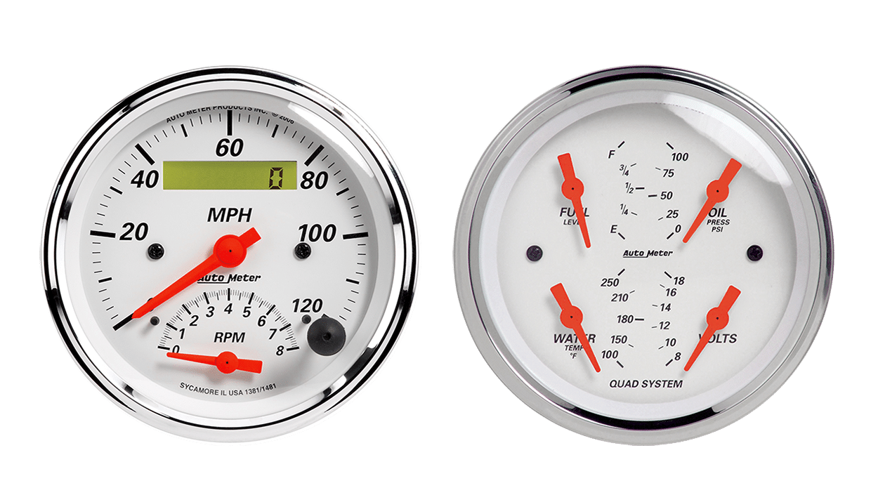 1309 Auto Meter Arctic White 2 Gauge Kit (3 3/8″ Speedometer/Tachometer & Quad)
