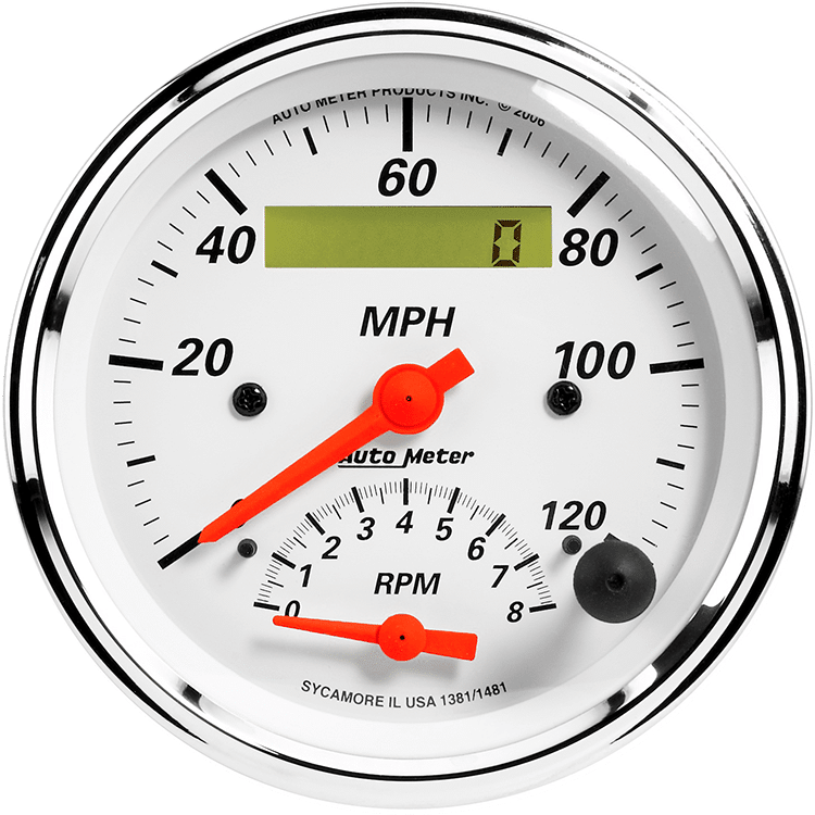 1381 Auto Meter Arctic White 3 3/8″ Speedometer/Tachometer Combo Gauge (120 MPH / 8,000 RPM)