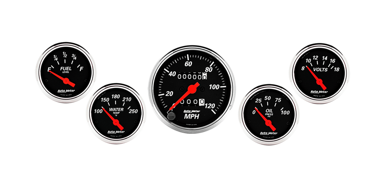 1420 Auto Meter Designer Black 5 Gauge Kit w/ Mechanical Speedometer (3 1/8″ & 2 1/16″)