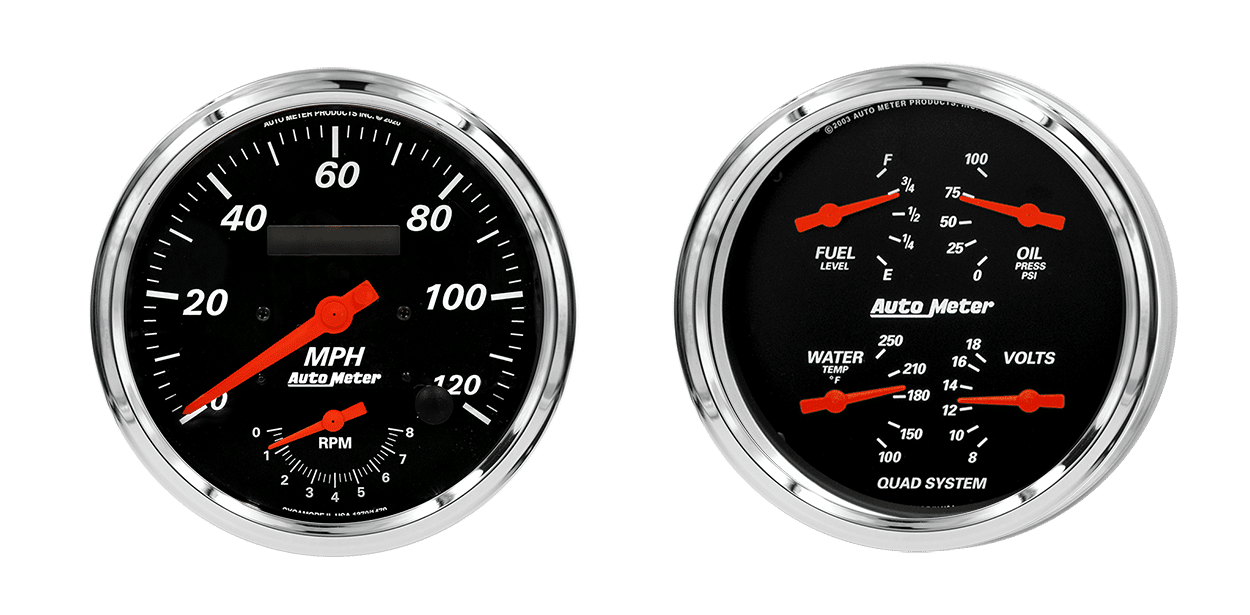 The AutoMeter Quad Gauge and Tach/Speedo Combo Kit is the all-in-one solution your dashboard needs. This space-saving kit combines our precise Electronic Tach/Speedo Combo with the durability of our Quad Gauge. Both combo products use the same internal meter movements utilized on our standalone products so you know you’ll enjoy accurate and reliable readings, rapid response, and compatibility with many different applications. Plus, the kit includes a fuel level sender (240E/33F ohm) and a vehicle speed sensor (GM-style) for added convenience. Upgrade your dashboard with AutoMeter’s reliable and comprehensive kit.
