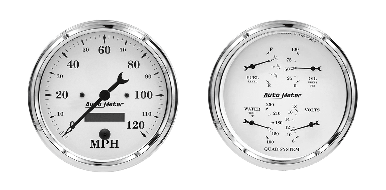 1603 Auto Meter Old Tyme White 2 Gauge Kit (5? Speedometer & Quad)