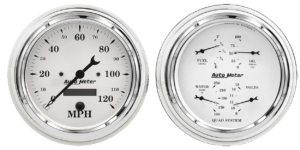 1681 Auto Meter Old Tyme White 3 3/8″ Speedometer/Tachometer Combo Gauge (120 MPH / 8,000 RPM)