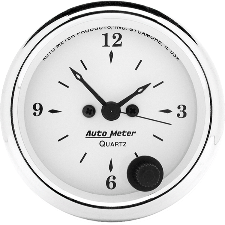 1686 Auto Meter Old Tyme White 2 1/16″ Quartz Clock 12 volt or 16 volt