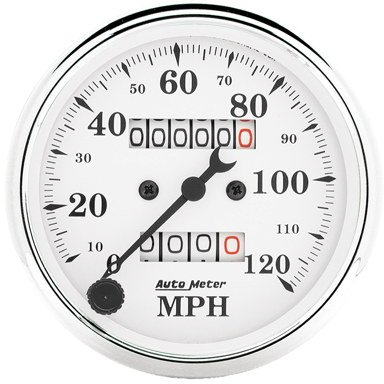 1693 Auto Meter Old Tyme White 3 1/8″ Mechanical 0-120 MPH Speedometer