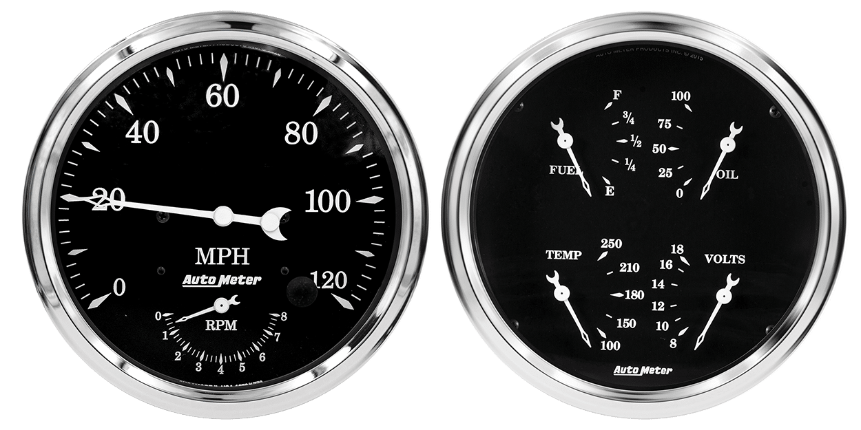 1703 AutoMeter Old Tyme Black 2 Gauge Kit (5? Speedometer & Quad)