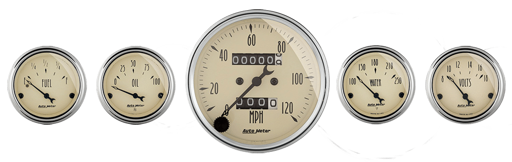1808 AutoMeter Antique Beige 5 Gauge Kit w/ Mechanical Speedometer (3 1/8″ & 2 1/16″)