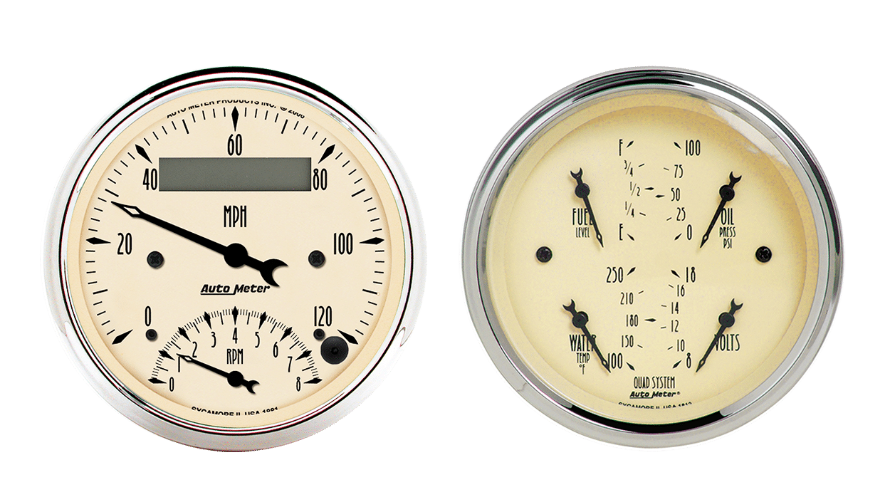 1820 Auto Meter Antique Beige 2 Gauge Kit (3 3/8″ Speedometer/Tachometer & Quad)