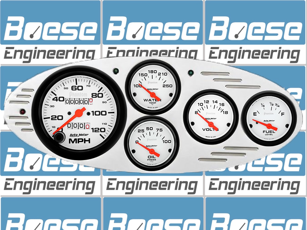 Includes aluminum gauge panel, Auto Meter Phantom gauges, & LED lights (turn signal & high beam indicators).