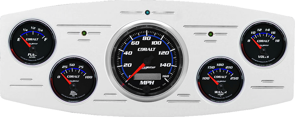 Includes aluminum dash insert, Auto Meter Cobalt gauges, & turn signal/high beam indicators.
