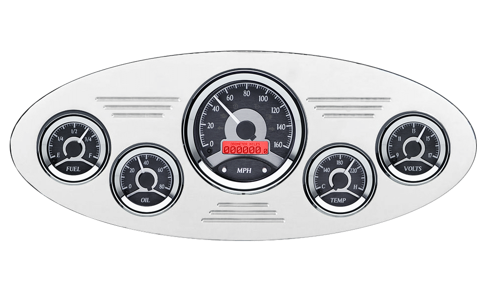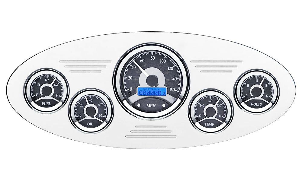 1940 Chevy Car Billet Aluminum Gauge Panel w/ Dakota Digital VHX-1050 Black Alloy Gauges