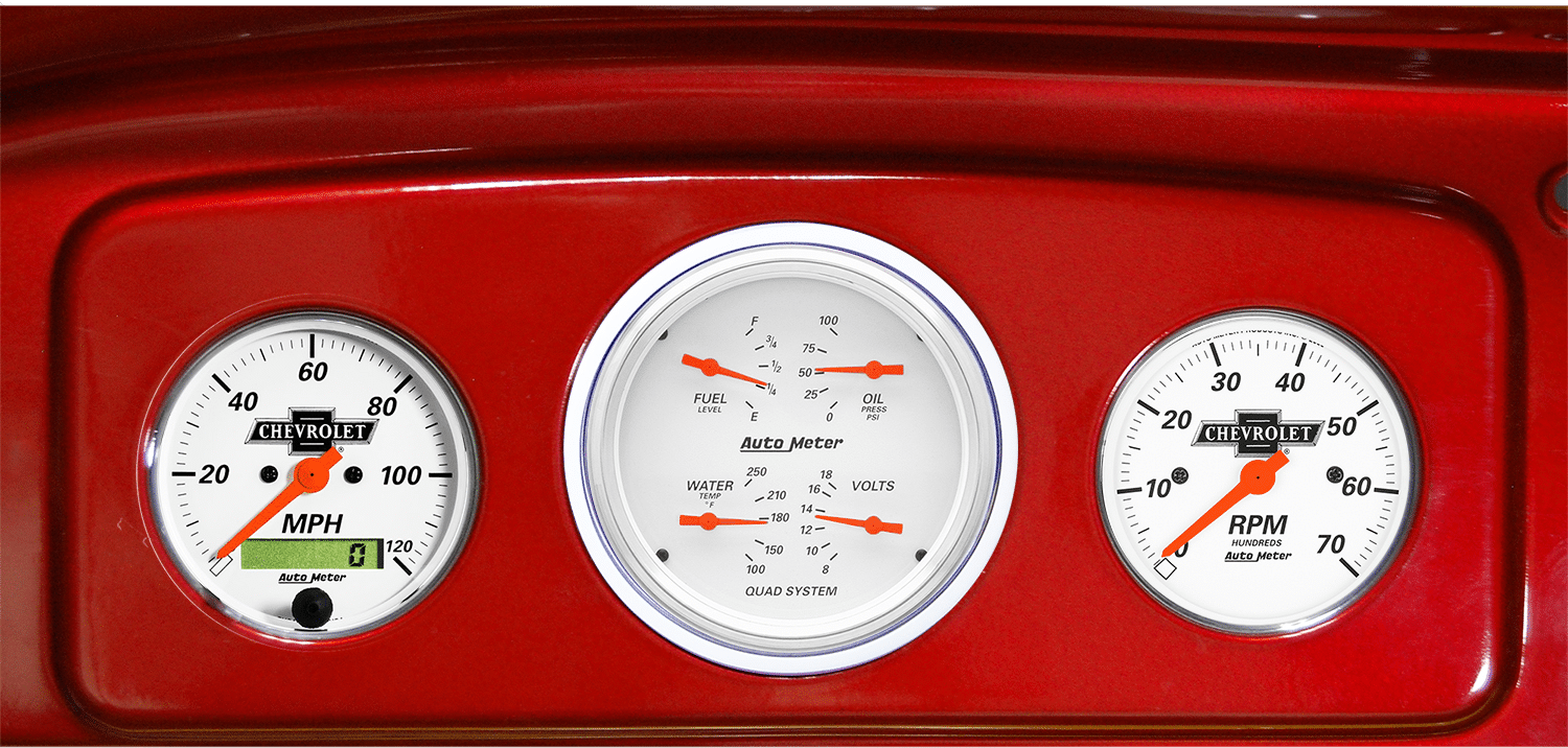 1935-1936 Chevy Master or 1935-1939 Chevy Truck Gauge Adapter w/ Auto Meter Old Tyme White Gauges
