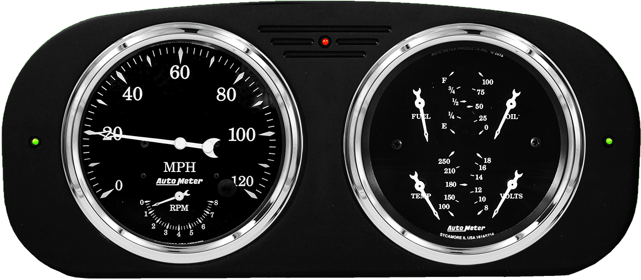 1940 Chevy Car Billet Aluminum Gauge Panel w Auto Meter Street Rod Series Gauges (Speedo/Tach)
