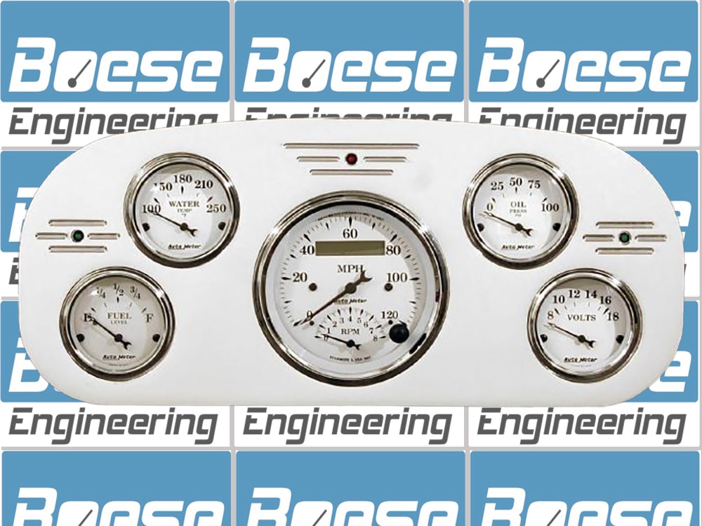 Includes aluminum dash insert, Auto Meter Street Rod series gauges and LED lights (turn signal & high beam indicators.).