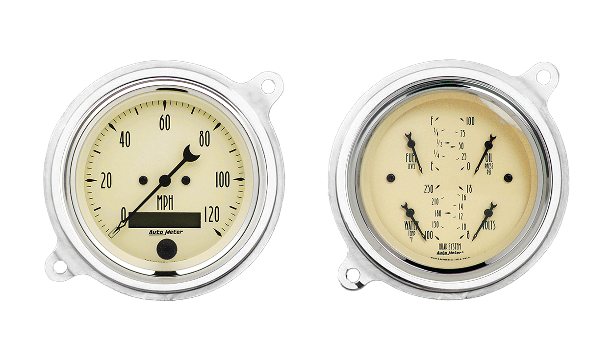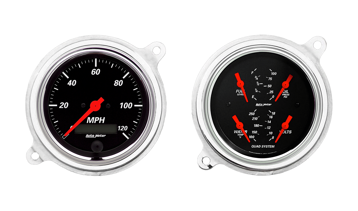 1936 Chevy Standard Aluminum Adapter Rings w/ Auto Meter Street Rod Series Gauges