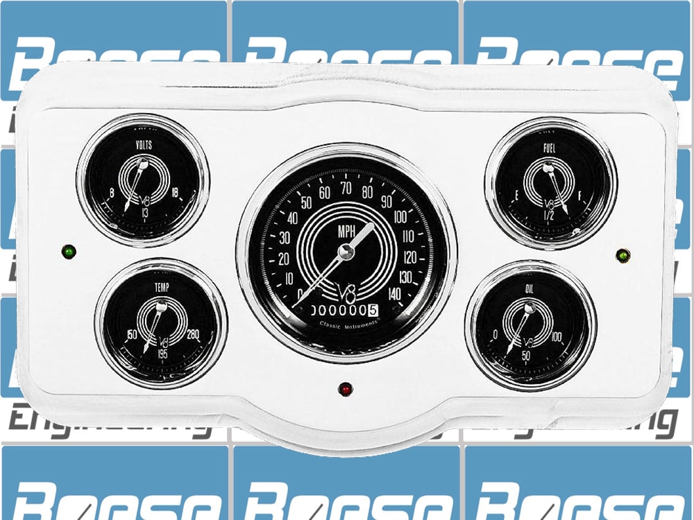 Includes aluminum dash insert, Classic Instruments gauges & LED lights (turn signal & high beam indicators).