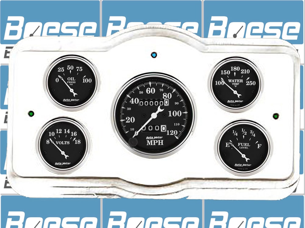 Includes aluminum dash insert, Auto Street Rod series gauges & turn signal/high beam indicators.