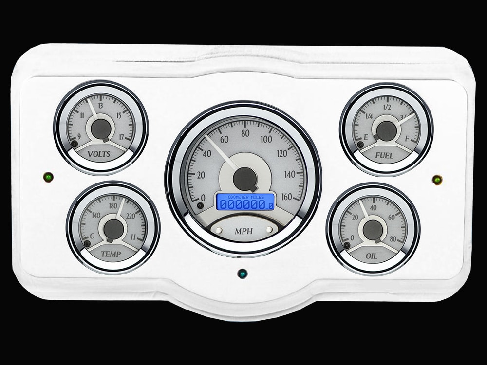 Includes aluminum dash insert, Dakota Digital VHX-1050 Silver Alloy 5 gauge round kit.