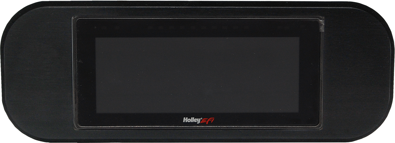 Holley’s new 6.86″ Pro Dash delivers over 200 monitoring channels of reliable real-time data in a more compact, full HD package suitable for nearly any motorsports application. Be assured that the Holley EFI 6.86″ Pro Dash will deliver the vitals you need! The 6.86″ Pro Dash is completely customizable for use in a variety of motorsports applications. It features a 6.86″ 1280×480 resolution low glare, high brightness, high contrast, full-color capacitive touch screen for easy viewing even in the sun, plug and play connection to all Holley EFI systems as well as a weatherproof aluminum housing featuring flexible mounting options. Monitor the power of your Holley EFI system at a glance! Holley EFI 6.86″ Pro Dash includes everything needed for installation! The Holley EFI 6.86″ Pro Dash also features a plethora of inputs and outputs for expanded functionality of your Holley EFI installation. The included 34pin connector has 13 multi-configurable inputs for most Holley EFI sensors, such as pressure and temperature. Not using Holley EFI sensors? We still have you covered, these inputs are configurable, allowing you to utilize different sensor scaling calibrations! The Pro Dash also features two dedicated speed inputs, for RPM, Driveshaft speed, or any other Hall effect speed input. Need more outputs? The Pro Dash contains 4 ground switched outputs, that can be utilized with the switch panel feature to quickly turn on any of your auxiliary accessories, such as a master nitrous switch, or an electric water pump. We have also integrated a 10-LED Programmable shift light into the bezel of the dash and added 4 optional LED’s that can be programmed for virtually anything, such as fuel pressure or oil pressure warning indicators, or a target boost indicator, the options are almost endless.