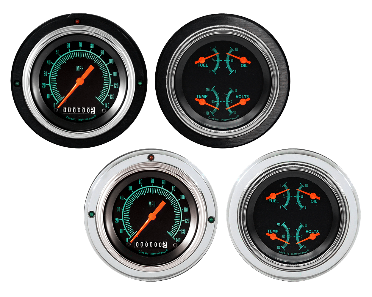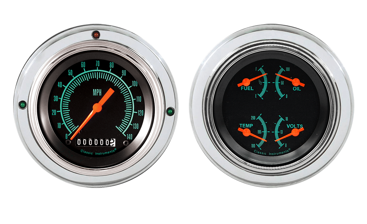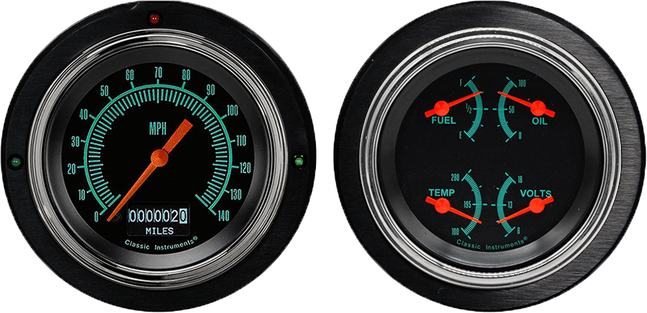 Includes aluminum adapter rings, Classic Instruments G/Stock gauges, & LED lights (turn signal & high beam indicators)