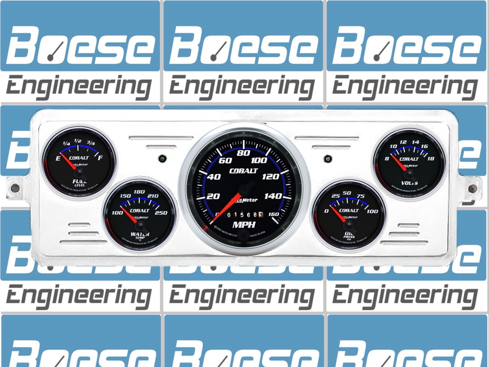 Includes aluminum dash insert, Auto Meter Cobalt gauges, & turn signal/high beam indicators.
