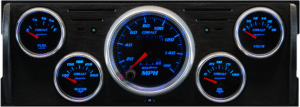 | Gauges Accepted | 3 1/8" & 2 1/16" Auto Meter Street Rod series, 3 3/8" & 2 1/16" Auto Meter Street Rod series, 3 3/8" & 2 1/16" Auto Meter "Super Bezels", 3 3/8" & 2 1/8" Classic Instruments, 3 3/8" & 2 1/16" Dolphin, 3 3/8" & 2 1/16" Dakota Digital VHX |