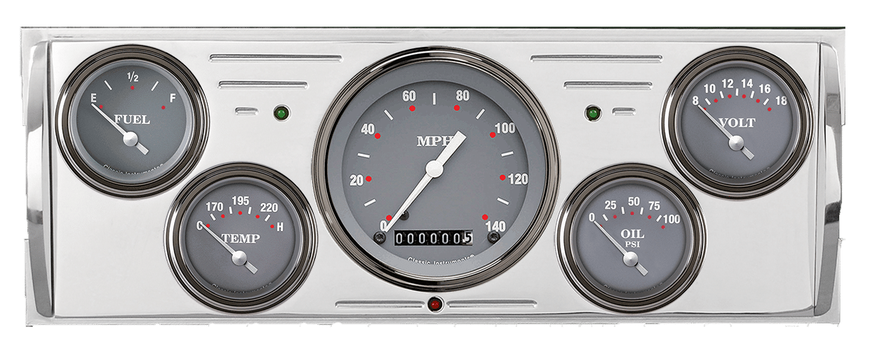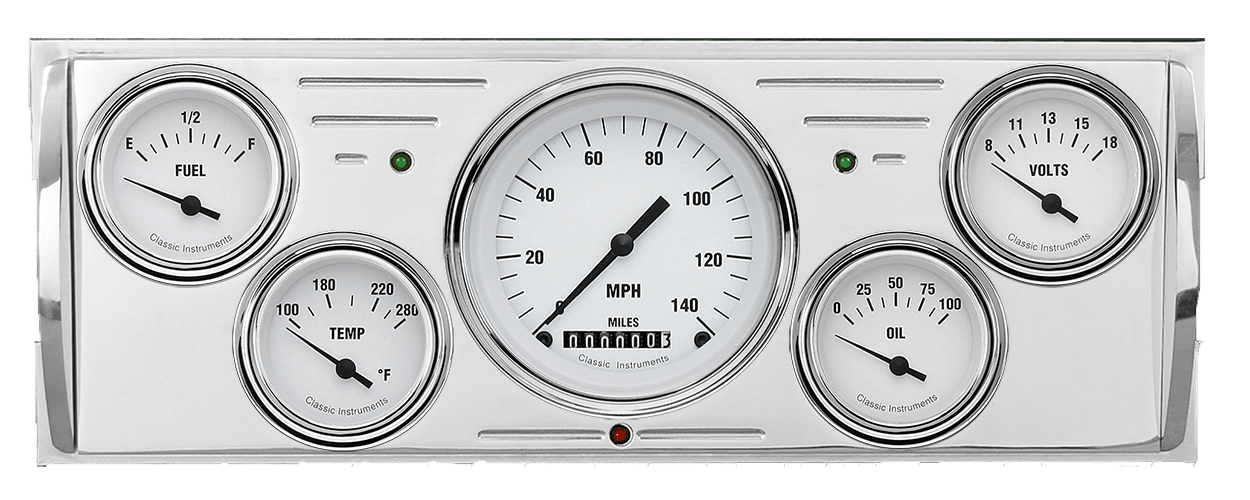 Includes aluminum dash insert, Classic Instruments gauges & LED lights (turn signal & high beam indicators).