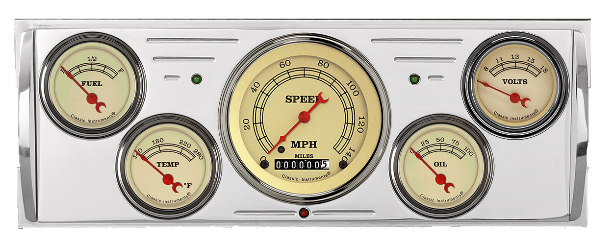 1940-1946 Chevy Truck Billet Aluminum 5 Gauge Panel w/ Classic Instruments Gauges (Ultimate Speedometer)