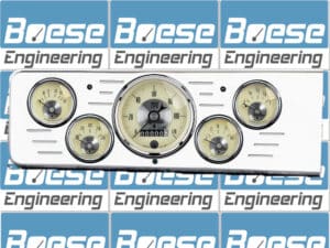 Includes aluminum dash insert, Auto Meter Chevy Vintage gauges & turn signal/high beam indicators.