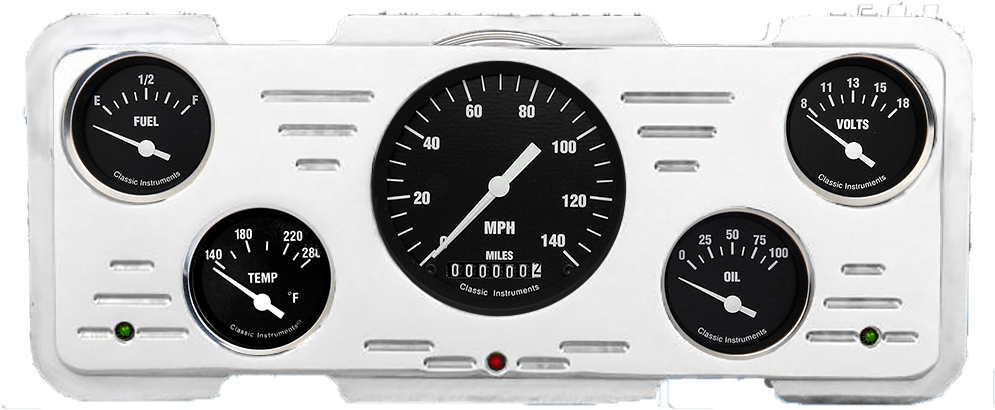 Includes aluminum dash insert, Classic Instruments gauges & LED lights (turn signal & high beam indicators).