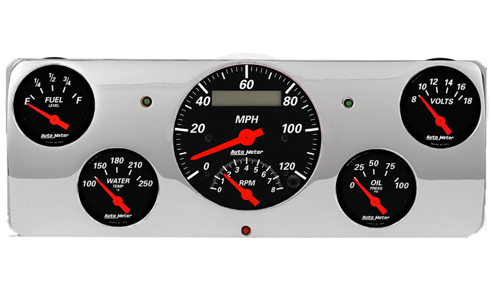 - 3 3/8” electric 120 MPH / 8,000 RPM speedometer/tachometer combination gauge
