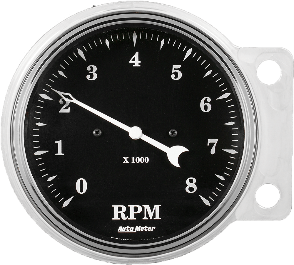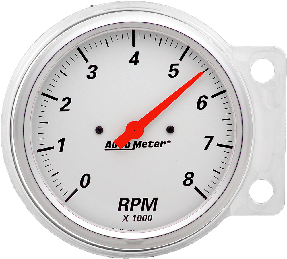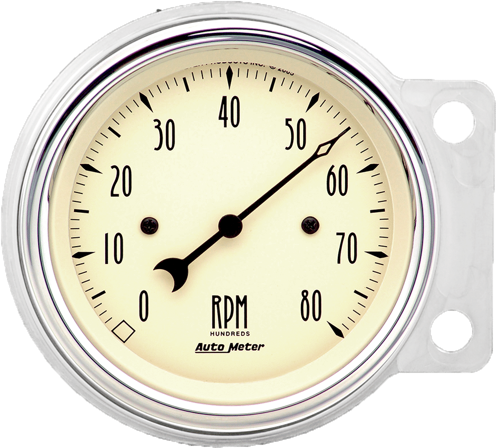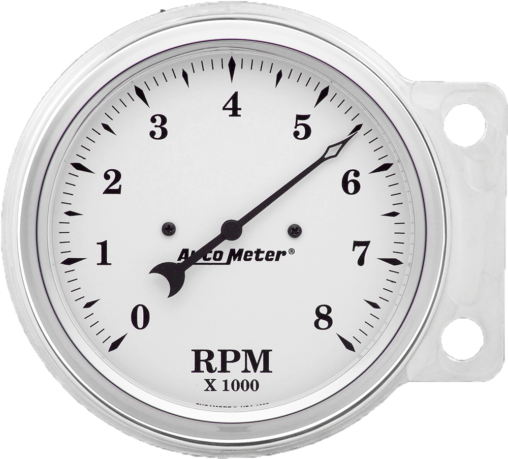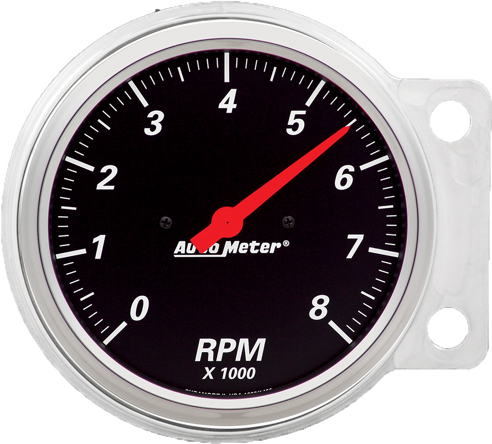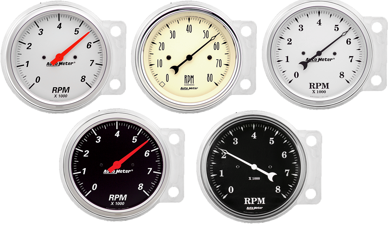 Includes aluminum tachometer insert & 5″ AutoMeter Street Rod series 8,000 RPM tachometer.