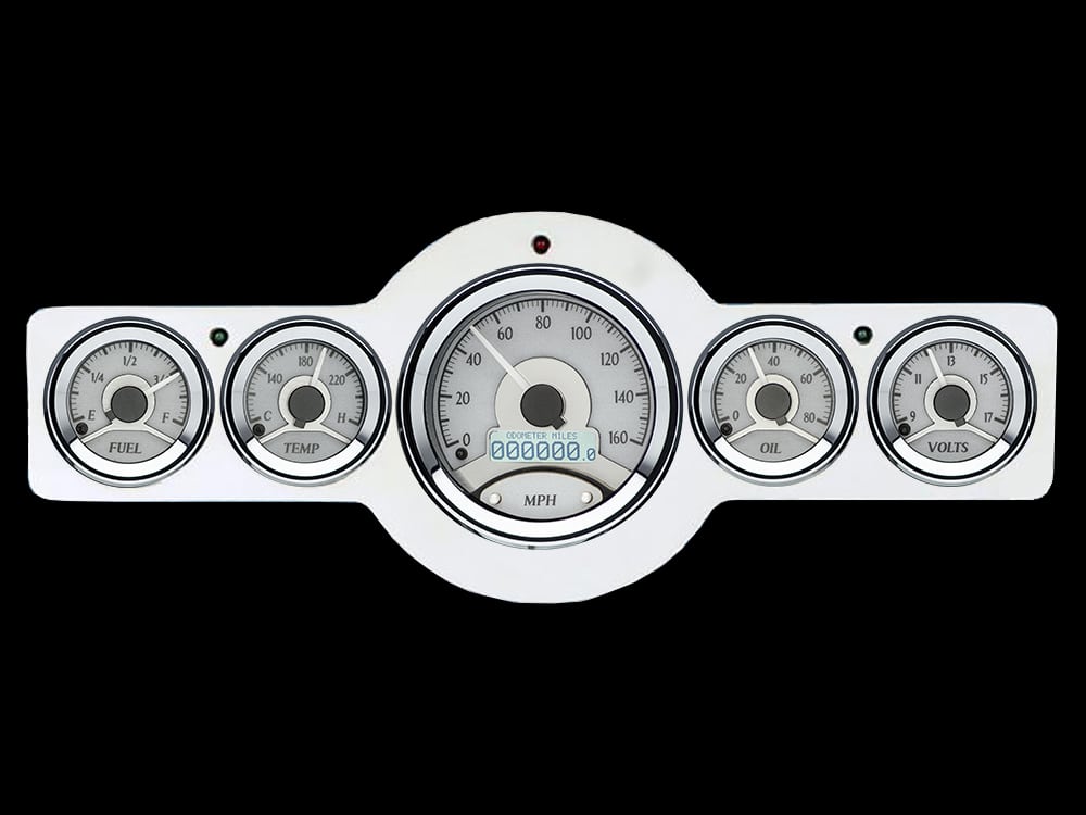 Includes aluminum dash insert, Dakota Digital VHX-1050 Silver Alloy 5 gauge round kit.