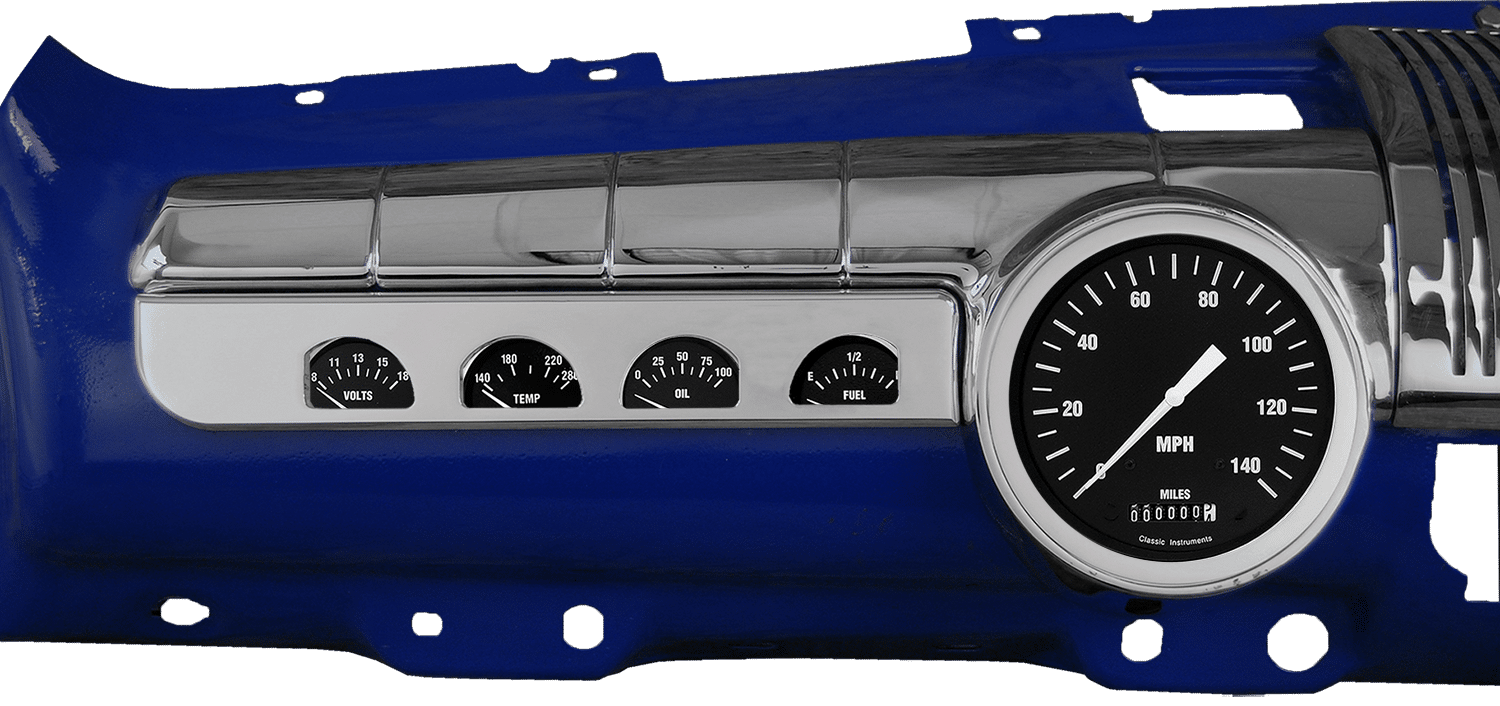 Includes aluminum 4 Gauge Insert, Speedometer Insert, & Classic Instruments gauges.