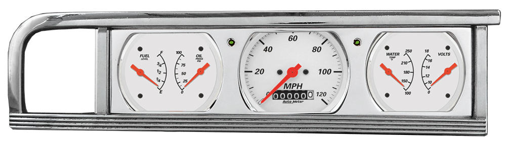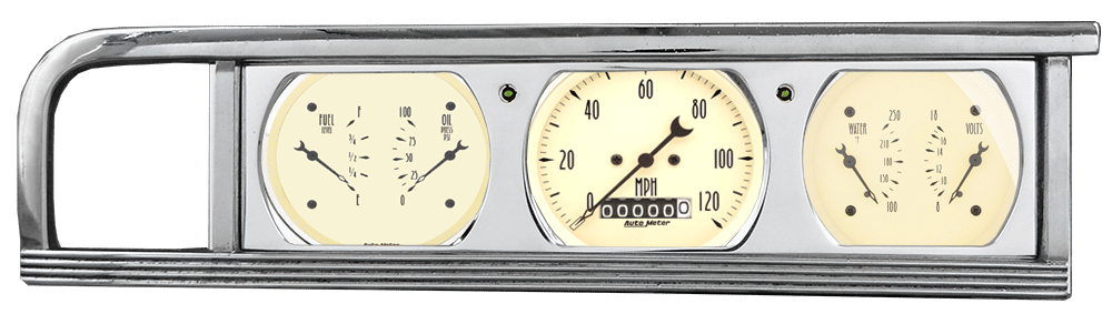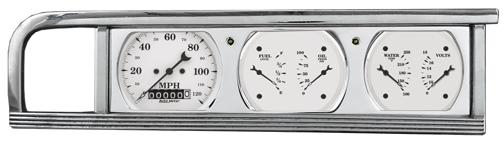 Includes aluminum adapter panel, Auto Street Rod series gauges & turn signal lights.