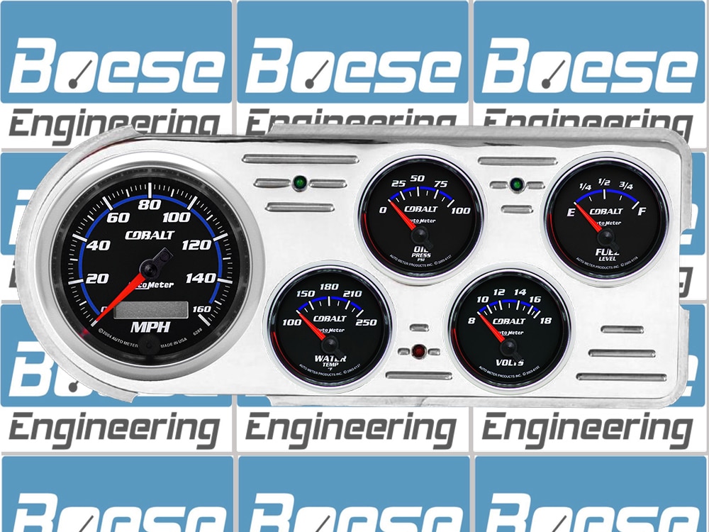 Includes aluminum dash insert, Auto Meter Cobalt gauges, & turn signal/high beam indicators.