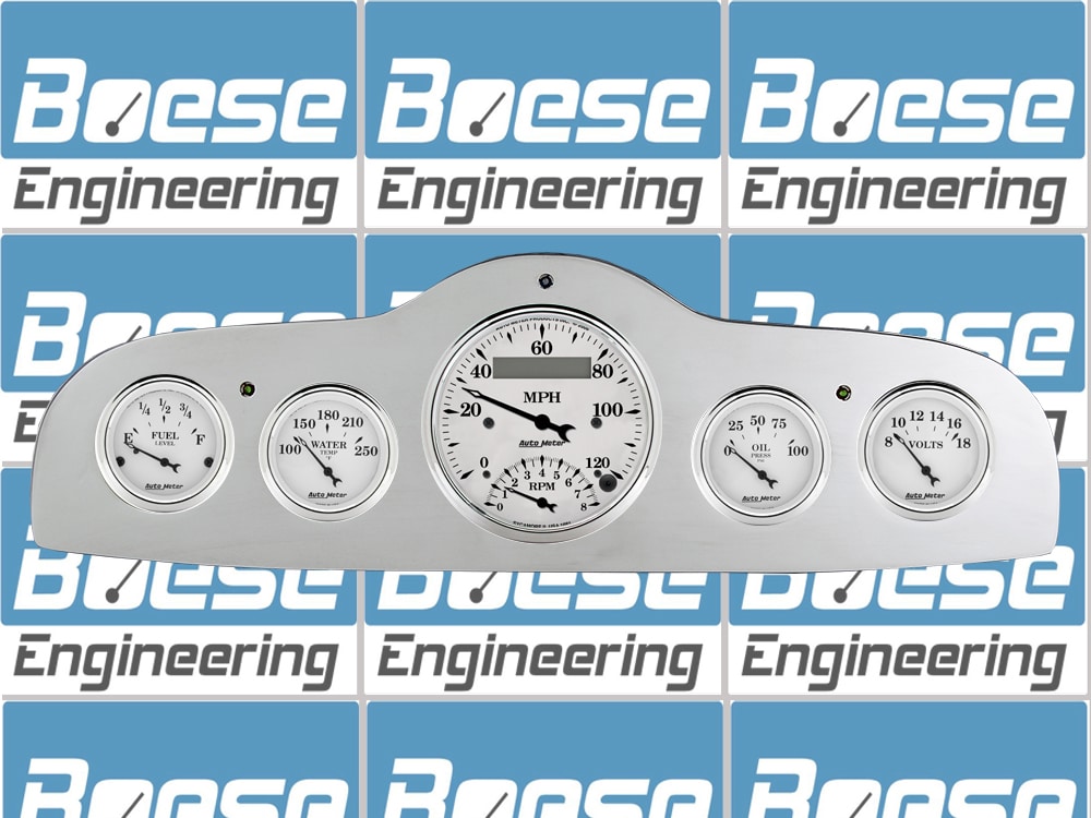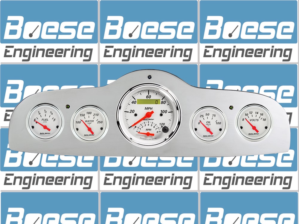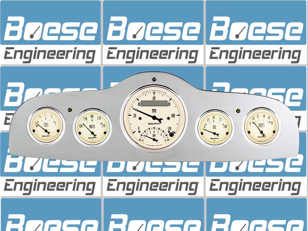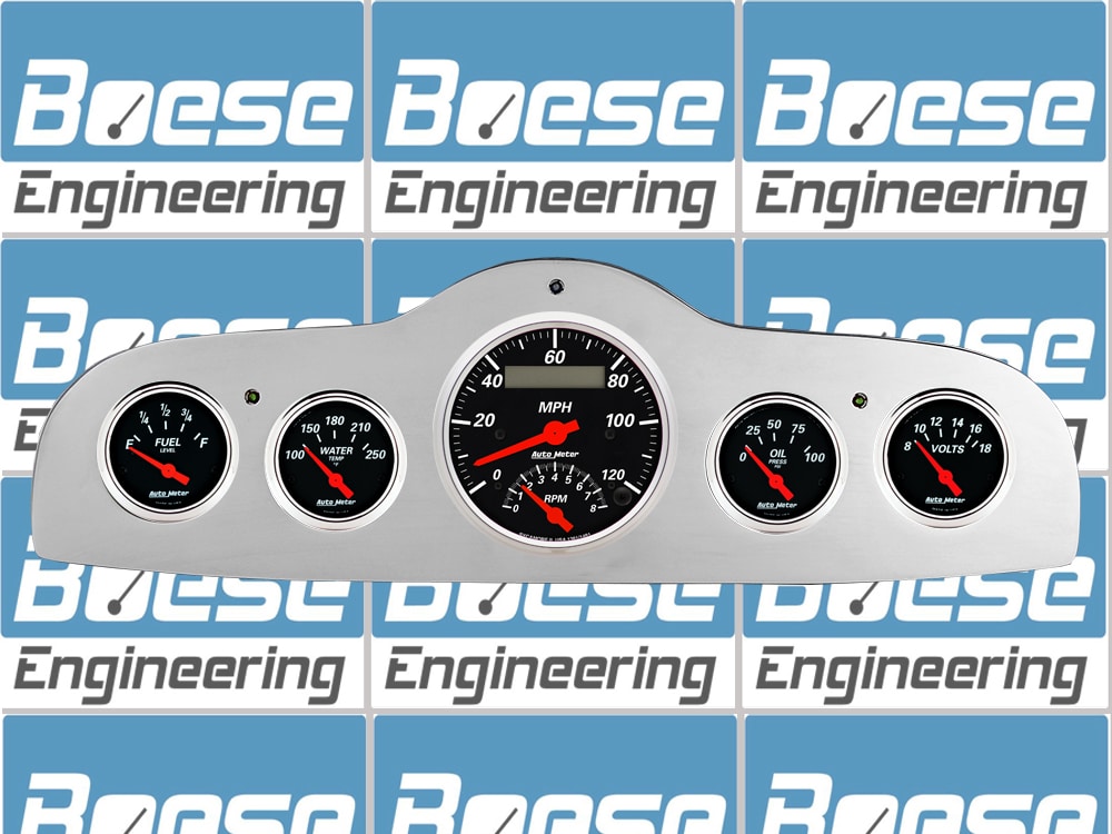 Includes aluminum dash insert, Auto Meter Street Rod series gauges and LED lights (turn signal & high beam indicators).