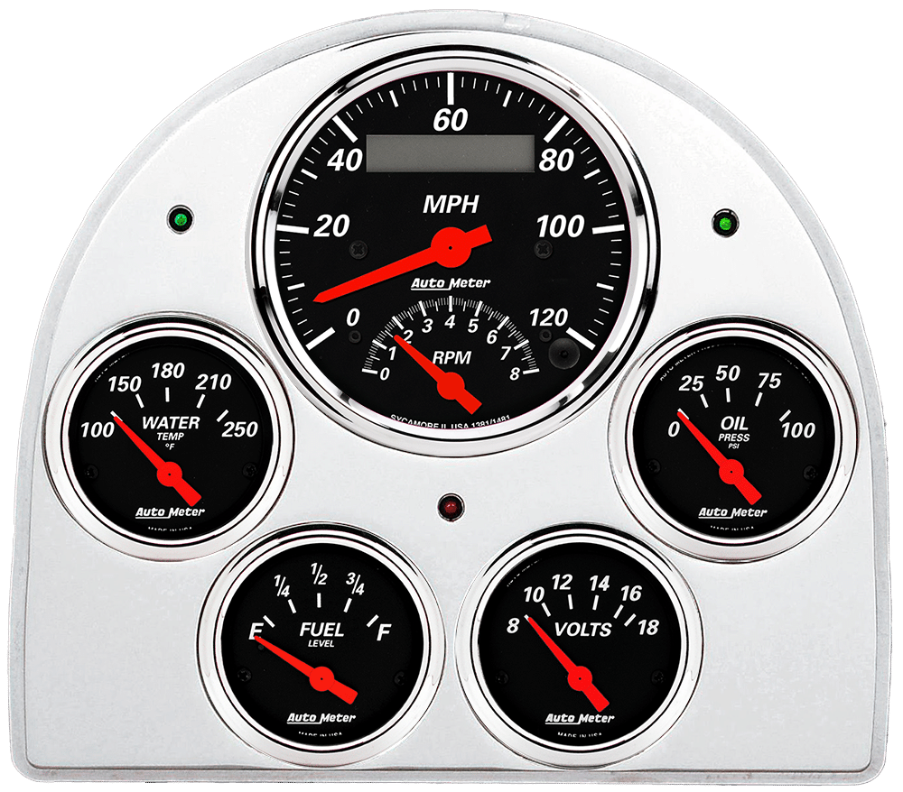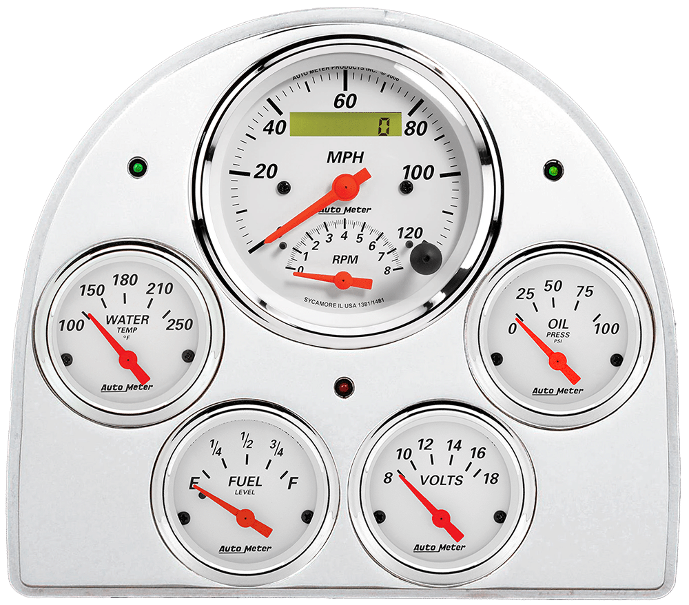 - 3 3/8” electric 120 MPH / 8,000 RPM speedometer/tachometer combination gauge