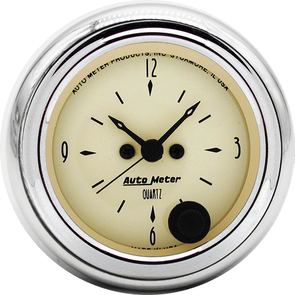 1885 Auto Meter Antique Beige 2 1/16″ Quartz Clock 12 volt or 16 volt