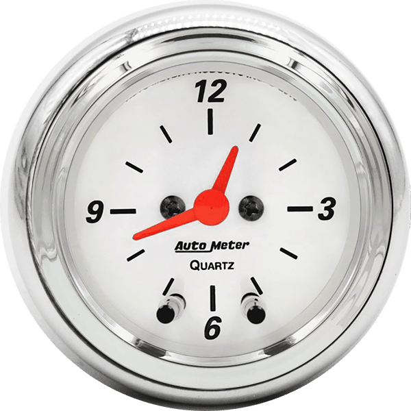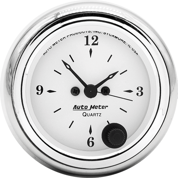 1686 Auto Meter Old Tyme White 2 1/16″ Quartz Clock 12 volt or 16 volt