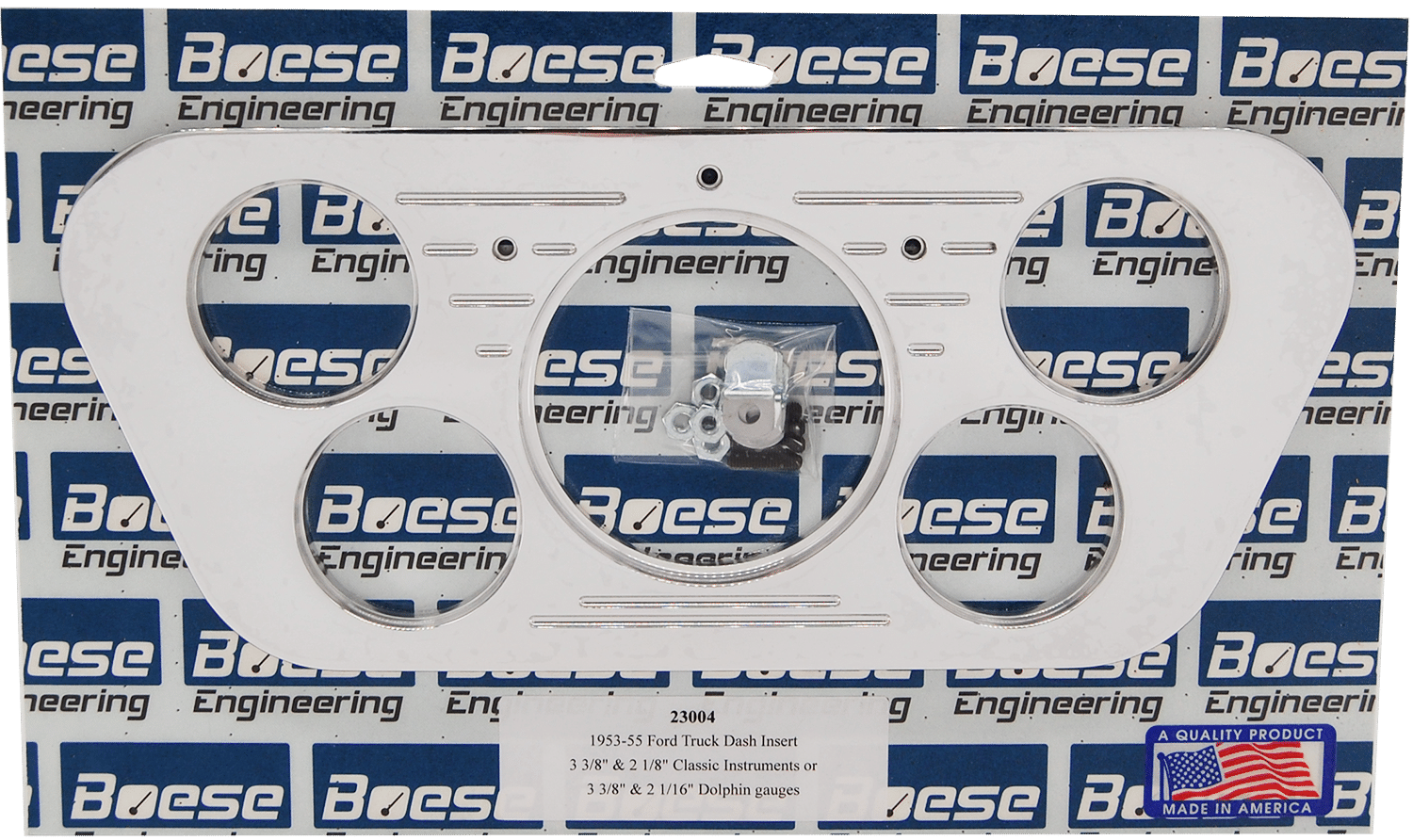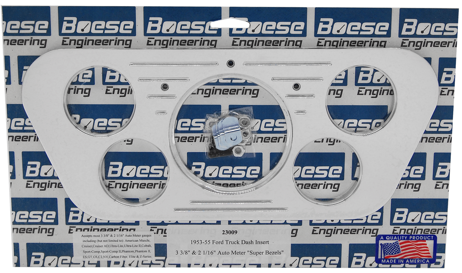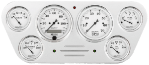 | Gauges Accepted | 3 1/8" & 2 1/16" Auto Meter Street Rod series, 3 3/8" & 2 1/16" Auto Meter Street Rod series, 3 3/8" & 2 1/16" Auto Meter "Super Bezels", 3 3/8" & 2 1/8" Classic Instruments, 3 3/8" & 2 1/16" Dolphin, 3 3/8" & 2 1/16" Dakota Digital VHX |
