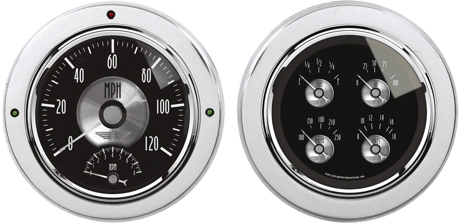 1954-1955 Chevy Truck Aluminum Adapter Rings w/ AutoMeter Prestige Series Gauges (8 mm indicators)