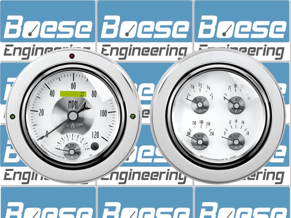 Includes aluminum adapter rings, Auto Meter Prestige series gauges, & LED lights (turn signal & high beam indicators)