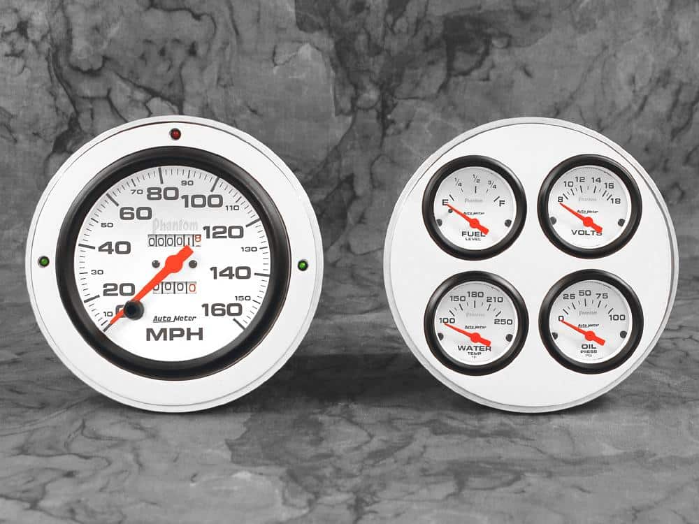 Includes polished aluminum gauge panels, Auto Meter Phantom gauges, & led lights. Gauges include 5″ mechanical speedometer & electric oil, water, volts, & fuel. Sending units are included for the oil pressure, water temperature, & fuel gauges.Additional information