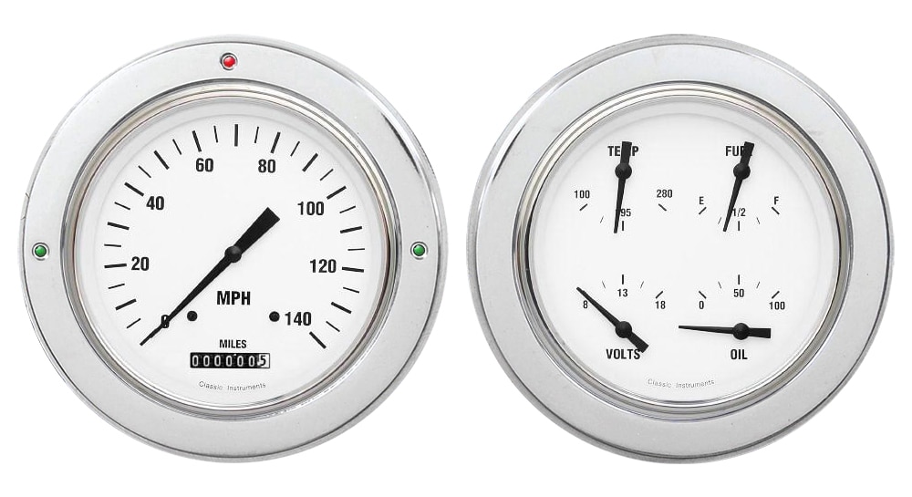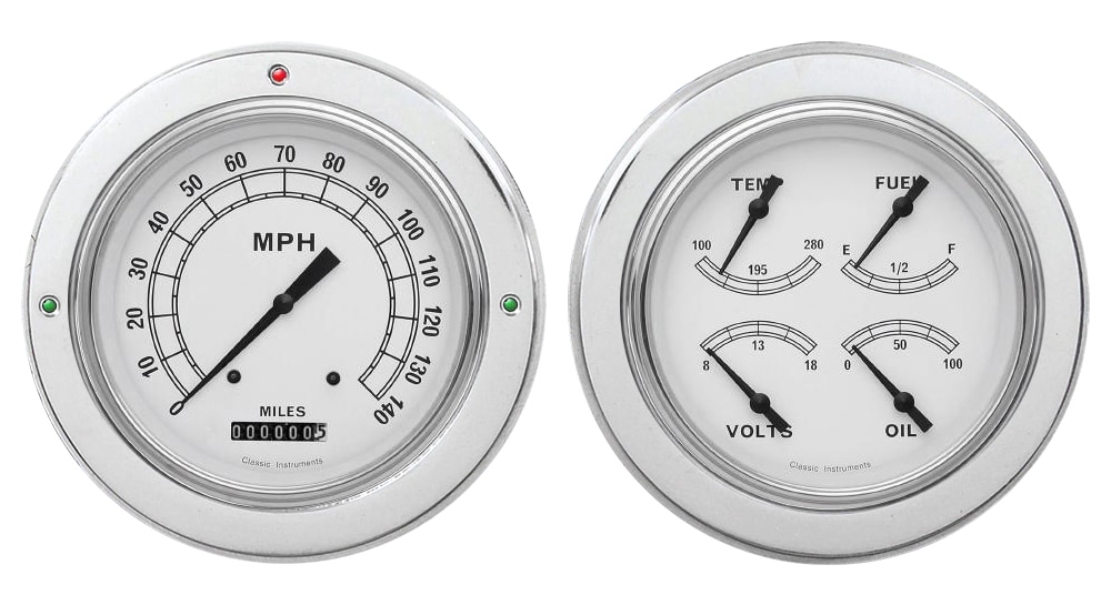 | Fuel Gauge Options | 240-33 ohms (includes sender), 0-90 ohms (late GM), 0-30 ohms (early GM), 75-10 ohms (pre-87 Ford) |