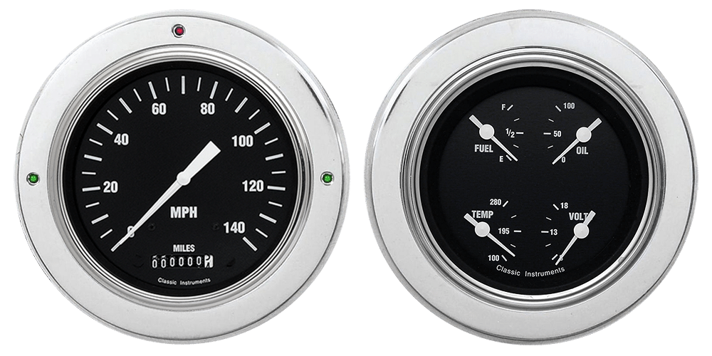 1954-1955 Chevy Truck Aluminum Adapter Rings w/ Auto Meter Street Rod Series Gauges