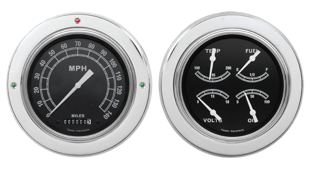 Includes aluminum dash insert, Classic Instruments gauges & LED lights (turn signal & high beam indicators).