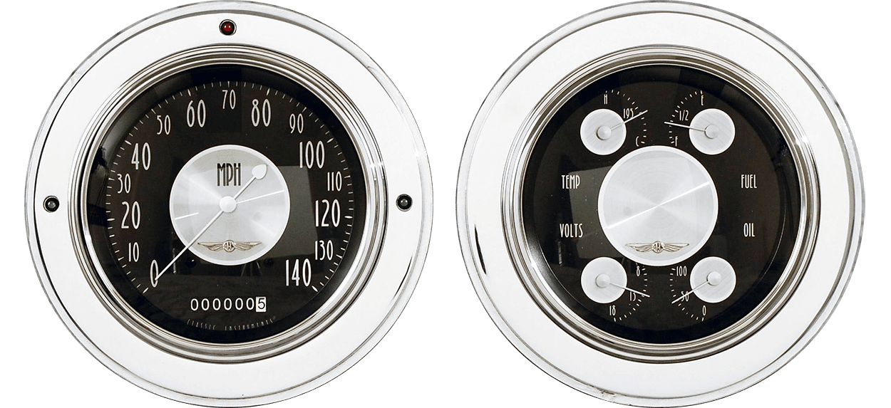 Includes aluminum dash insert, Classic Instruments gauges & LED lights (turn signal & high beam indicators).