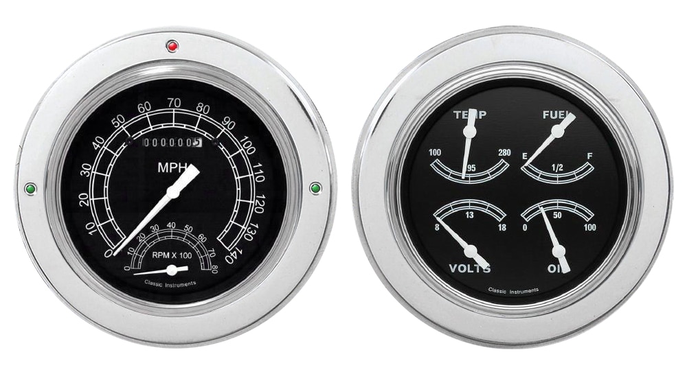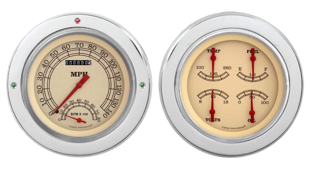 Includes aluminum dash insert, Classic Instruments gauges & LED lights (turn signal & high beam indicators).