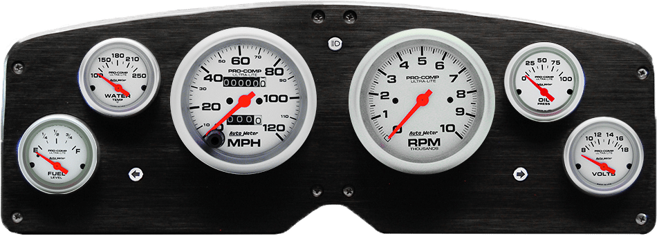 Includes aluminum gauge panel, Auto Meter Ultra-Lite gauges, & LED lights (turn signal & high beam indicators).