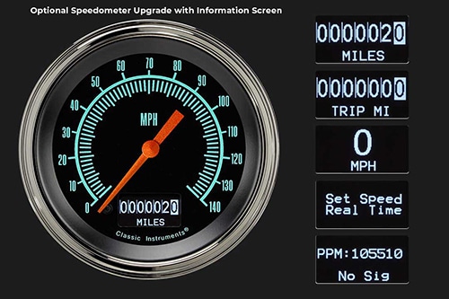 | Fuel Gauge Options | 75-10 ohms (works w/ stock sender), 240-33 ohms (includes sender), 0-90 ohms (late GM), 0-30 ohms (early GM) |